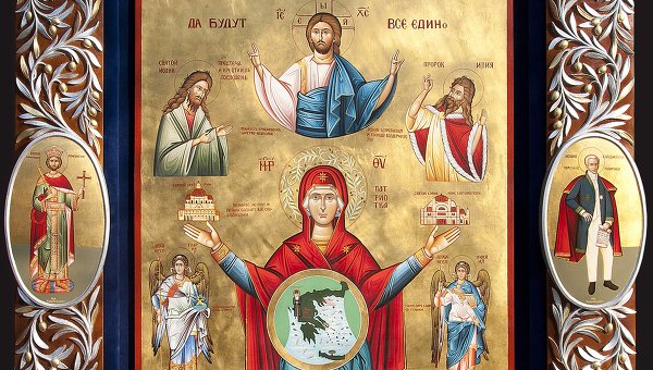 Уникальную икону — Панайа Патриотисса (Божья матерь Патриотка), или «Единство» написали специально для России в благодарность за вклад в сохранение традиций православия и за вклад в развитие Европы, — сообщает РИА Новости