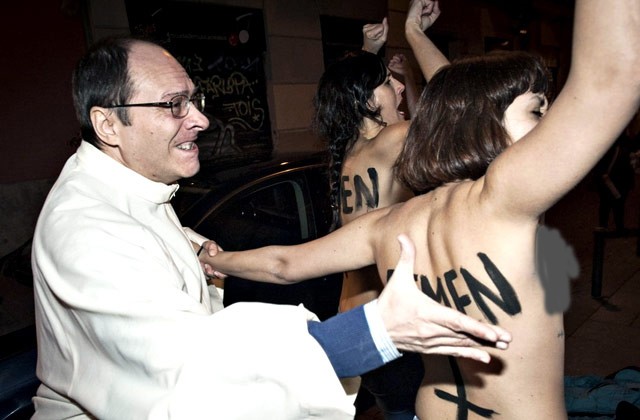 3 февраля, ПРАВМИР. Движение Femen объявило о начале «кровавой войны» с католической церковью в Испании за право женщин на аборты. Пятеро активисток обнажились до пояса и напали на кардинала Руко Варела в знак протеста против нового законопроекта, вводящего жесткие ограничения на прерывание беременности, сообщает Newsru.com.