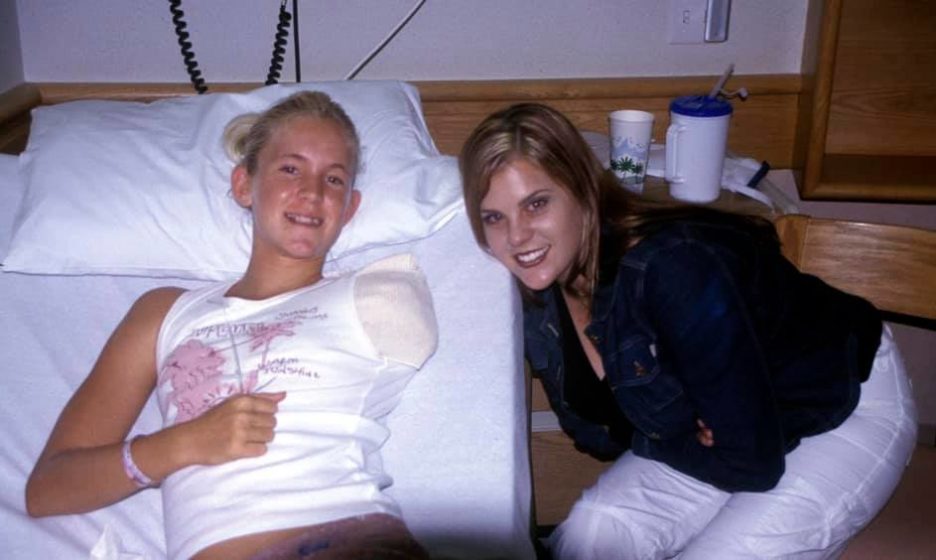 Бетани Гамильтон с подругой в больнице после нападения акулы