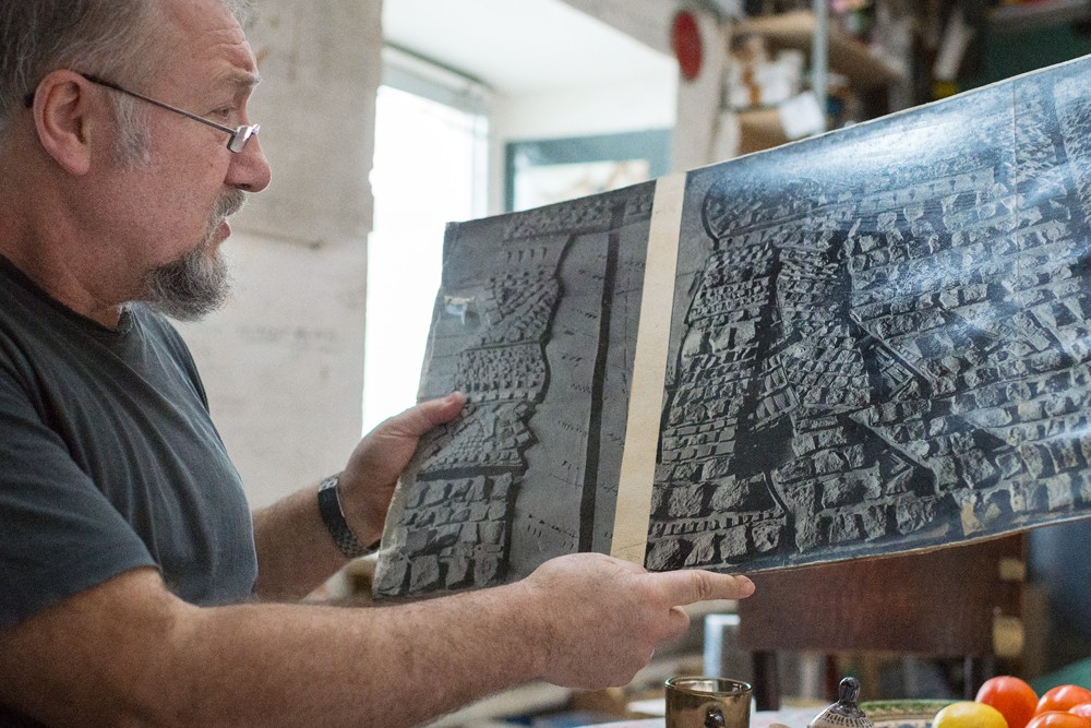 Там есть определенные приемы. Скажем, мне надо было передать в бетоне видимость тычка, который был в глине. Я придумал такой металлический упругий элемент, который выщипывал часть в живом бетоне и в этот момент, в какие-то доли секунды бетон был подобен сырой глине. Правда, это дошло до меня только сейчас, а занимался я этим сорок лет назад.