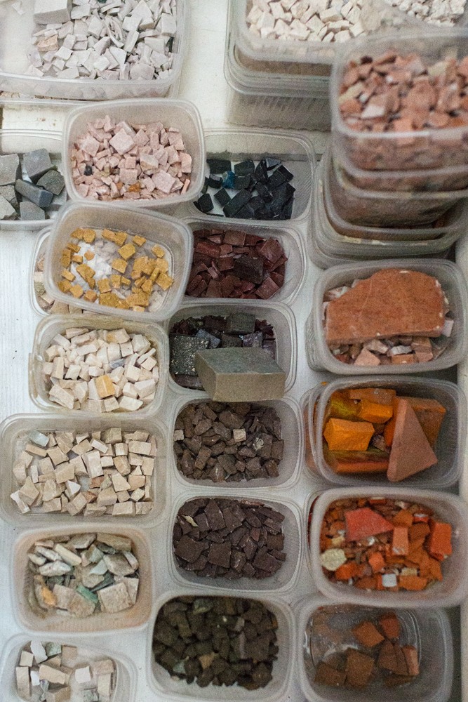 Когда я работал в Равенне, там поколение за поколением были художники, которые занимались копиями Равеннских мозаик, целые густые фамилии. Когда глава семьи умирал, у него оставались тонны старой смальты. И тогда вдова или близкие продавали эту смальту. Я у них покупал.