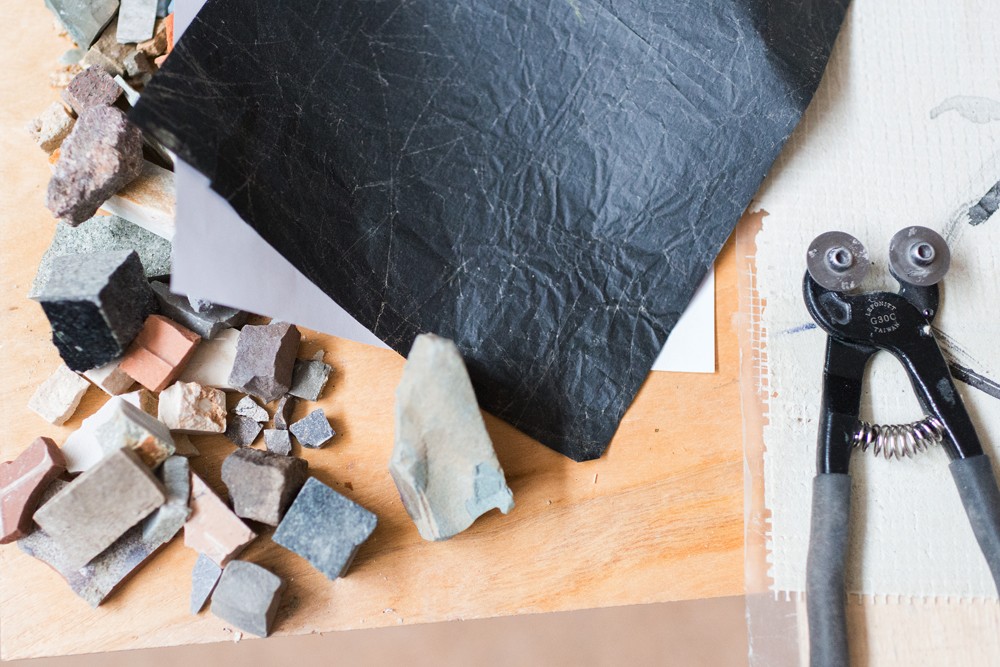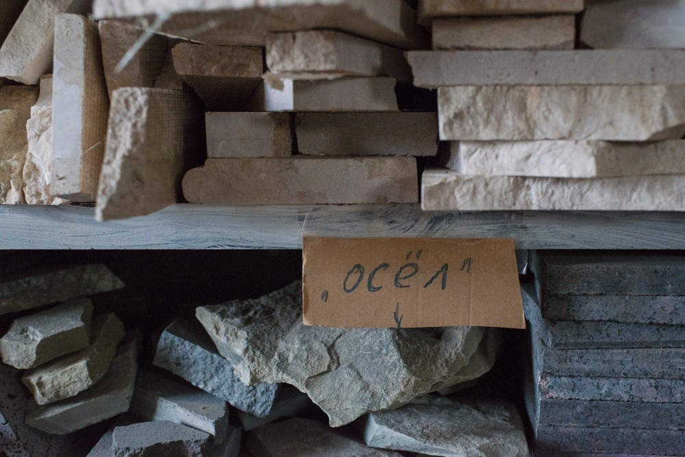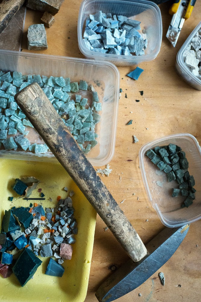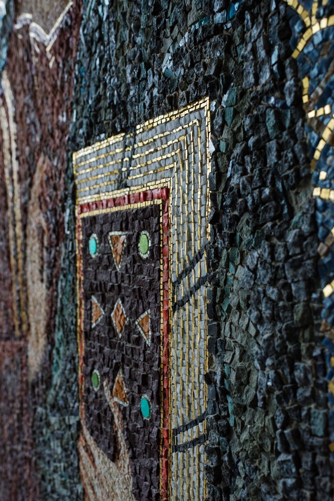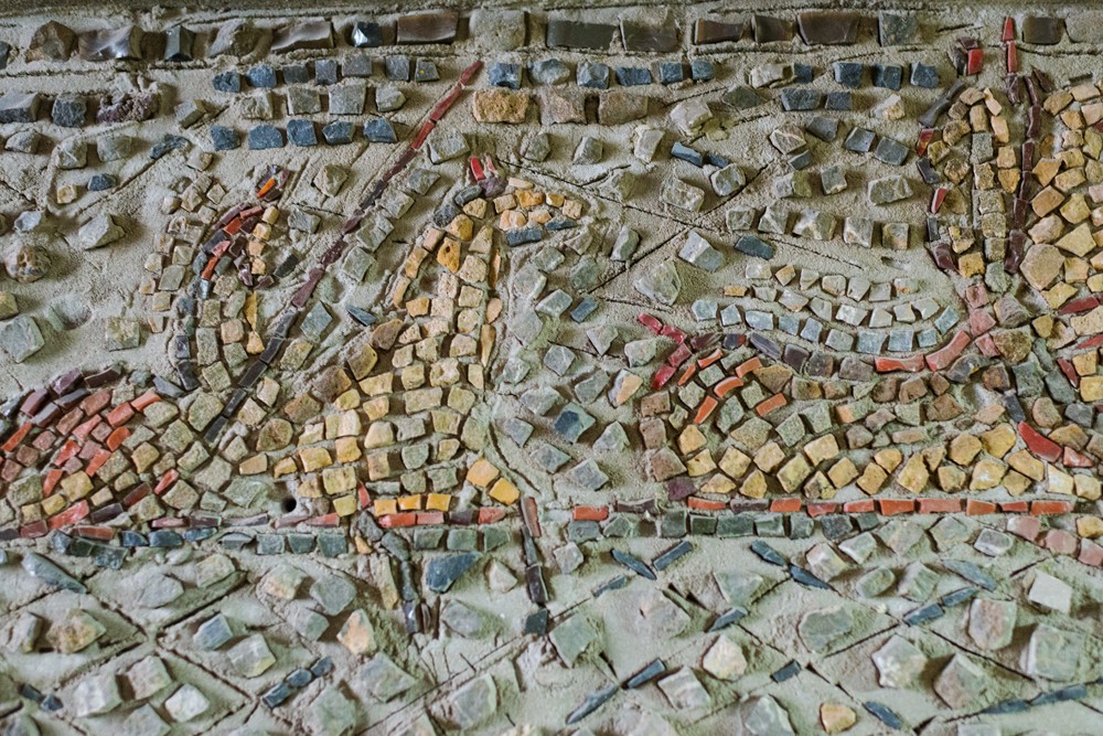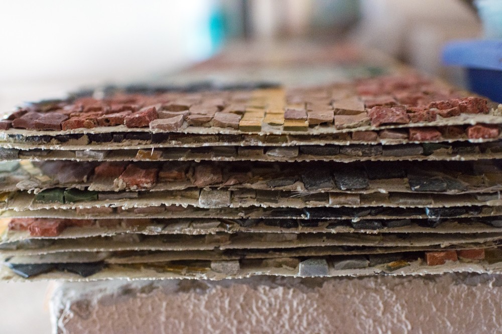 И ещё камень и глина – две наиболее контрастные стихии. Всё-таки мозаику рассматривают обычно как сочетание двух компонентов – это игра между вяжущим и корпусным. И вот глина – материал, который мы до обидного быстро постигаем в детстве, и позже заново в наших чувствах не пересматриваем.