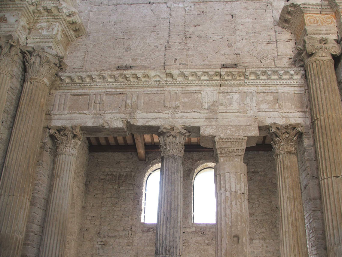 Горизонтальное перекрытие между колоннами. Архитрав базилики Сан-Сальваторе, Сполето, Италия. Фото Википедия.