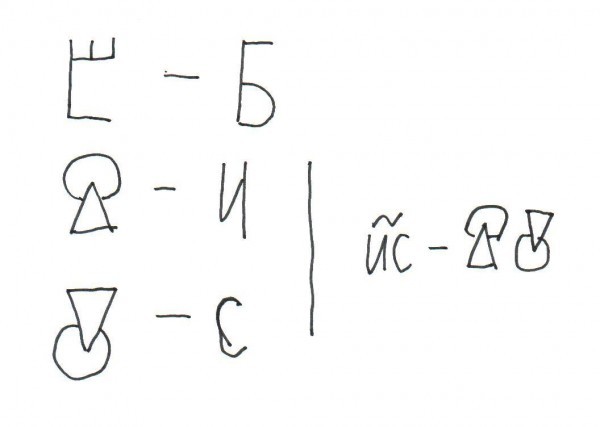 Например, глаголическая буква «б», с которой начинается слово «Бог», состоит из трех вертикальных черт и двух горизонтальных. Весьма правдоподобным кажется предположение, что здесь (как и в сложение пальцев при крестном знамении) мы видим символы Пресвятой Троицы и двойной (богочеловеческой) природа Христа. Обращают на себя внимание и буквы «и» и «с», которые являются симметричным, зеркальным отражением друг друга. Это очень эффектно смотрится в написании под титлом имени Иисус. Ясно, что эти вещи не случайны, что создатель этого алфавита пытался построить внешний облик букв в соответствии с какой-то внутренней логикой. Но способа реконструировать эту логику у нас нет. Мы можем только фантазировать и предлагать умозрительные построения. Кстати, любопытно, что именно с сочетания букв «и» и «с» начинается Евангелие от Иоанна, с которого и начались славянские переводы.