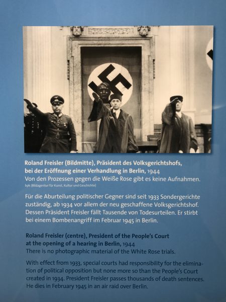 Пышный белый цветок стоит в прозрачной вазе на столике при входе. Исследователи до сих пор не пришли к единому мнению, почему именно роза стала символом студенческого антифашисткого движения: был ли этот образ эстетским и глубоко продуманным или случайностью. Пятеро двадцатилетних студентов, казненные в 1943 году решением народного суда, уже ни о чем не расскажут.