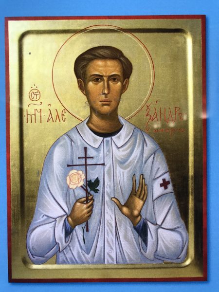 Если честно, я не думала, что история «Белой Розы» хоть как-то может быть мне интересна. Сомневалась, что целый день из тех пяти, что мы проведем с детьми в Мюнхене, стоит посвящать выставке о неизвестных мне людях. Не лучше ли было отправиться в Леголенд, зоопарк, наконец, в Пинакотеку? Но потом на экспозиции я увидела икону святого Александра Шмореля в белом халате санитара с красным крестом на плече и розой в руке, прочла о его происхождении, о долгом процессе канонизации, инициированном архиепископом Берлинским и Германским Марком. Нет, эта история не случайно всплыла передо мной накануне 9 мая.