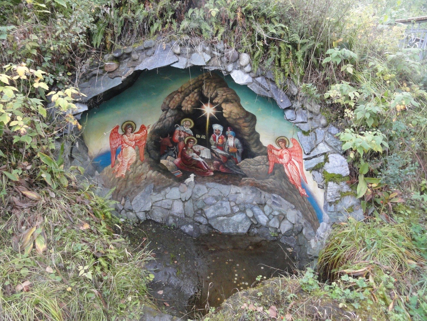 Эта икона, на которую паломники, часто абсолютно неверующие, в каком-то смысле молятся, освящает это место. Паломники понимают, что идут не просто прогуляться на экзотический островок с такой любопытной природой. Они, в общем, даже если они этого не осознают, идут к Богу, и идут к Богу с молитвой, как они ее понимают. На пути к храму их встречает такая маленькая пещерка с образом Рождества Христова — напоминание о той пещере, в которой Младенец Христос родился в Вифлееме.