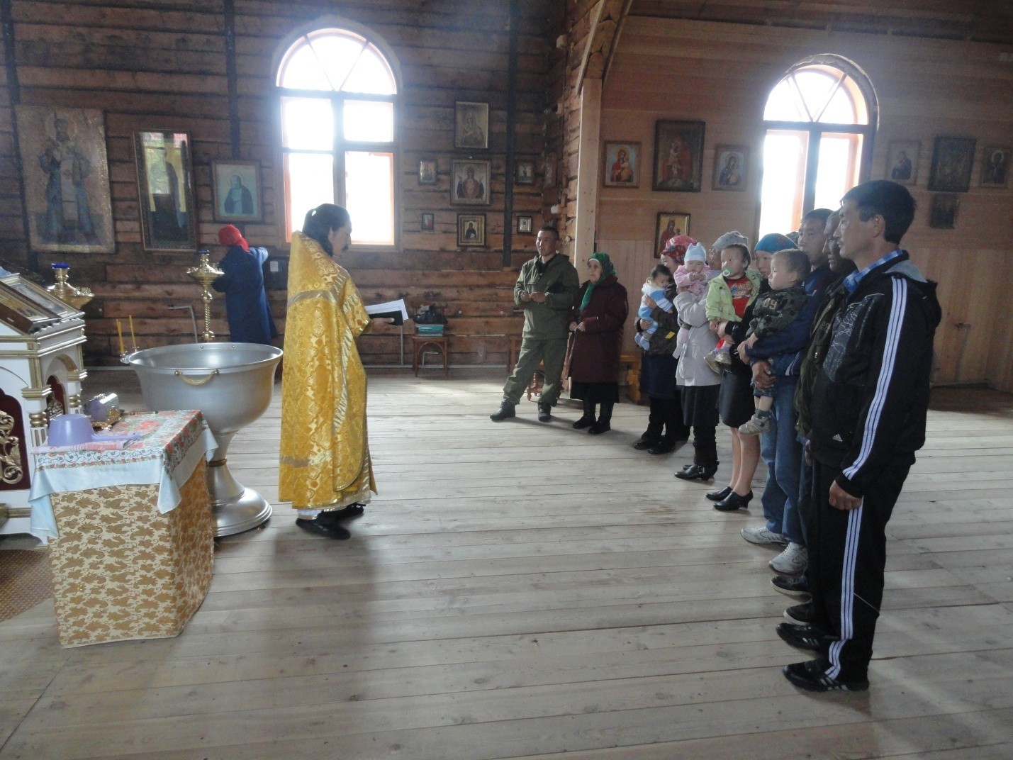 В этой деревне живут только алтайцы. И я видел, что на службе был только один русский. После окончания службы было крещение, и передо мной предстало невероятное зрелище: одновременно крестилось 10 человек, возрастом от 60 лет до двух-трех месяцев. Такое массовое крещение я, честно говоря, никогда не видел. Возник образ какой-то раннехристианский.