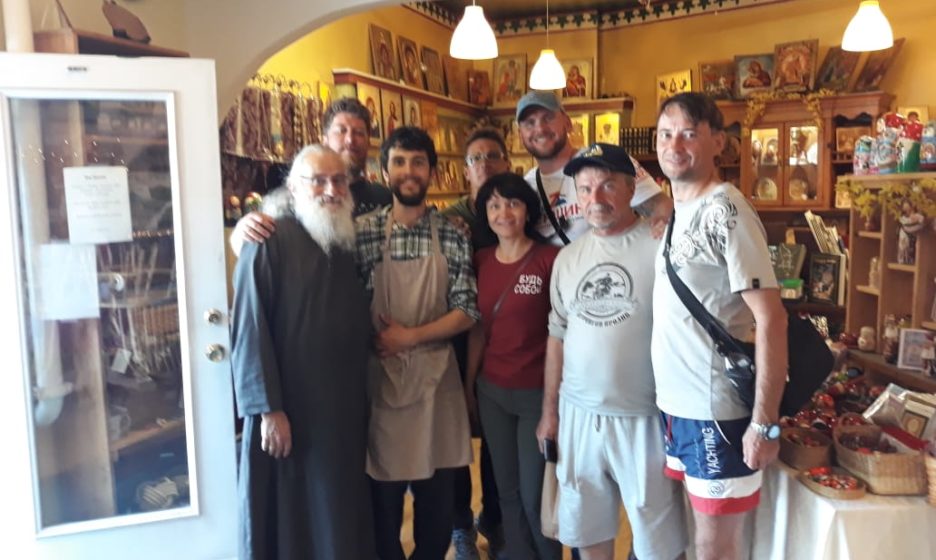 «Нашли кофейню, сделанную в русском стиле, с православными иконами, российским гербом и портретами царской семьи Николая II. Часть персонала говорит на русском. Нам здесь обрадовались, – написал Петров. – Все эти ребята служат в местной православной церкви. Исполнили нам тропарь «Христос Воскресе из мертвых», подарили большой мешок вкусного кофе и много домашних булочек. Батюшка вручил икону Германа Аляскинского, вырезанную на дереве. Мы рассказали об экспедиции и вместе с представителями общины отправились к нам на катамаран на экскурсию. Они смотрели на наше судно и восторгались, как на нем, мол, можно прийти из России через океан».
