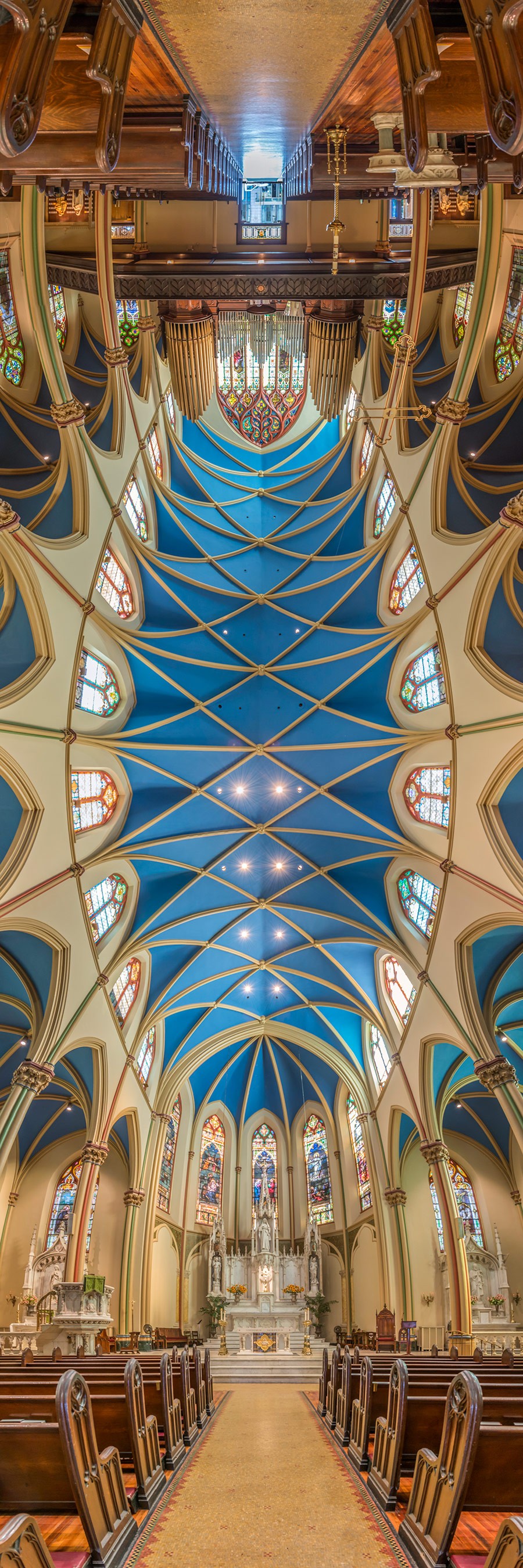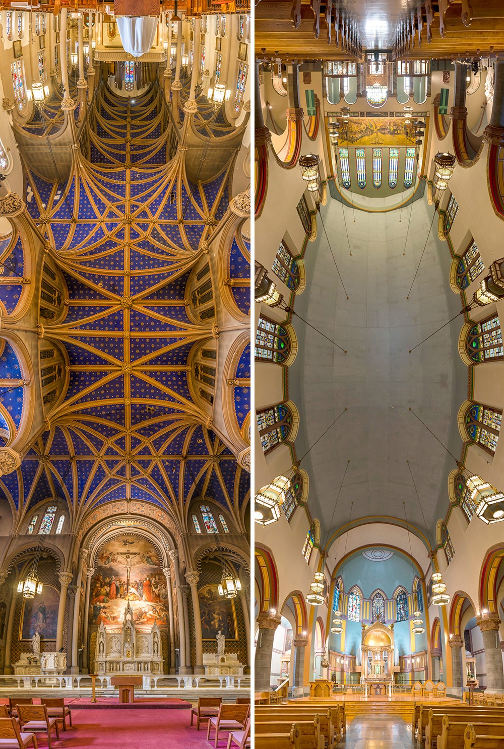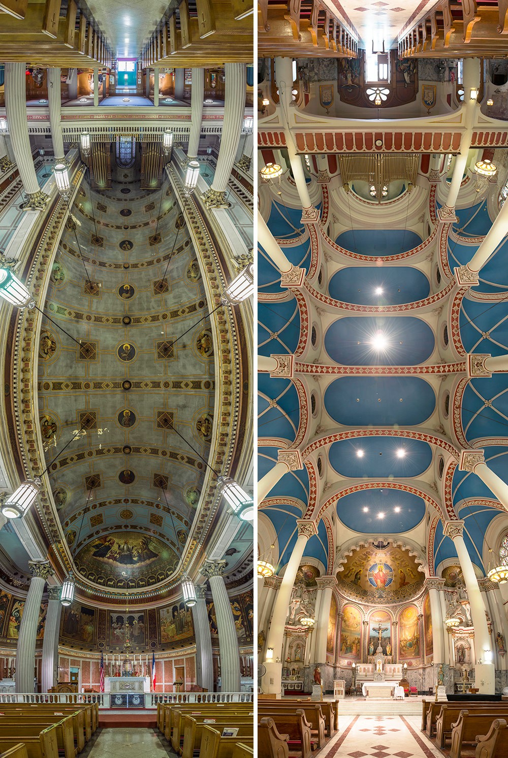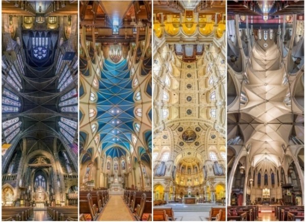 Американский фотограф Ричард Сильвер снял вертикальные панорамы церквей Нью-Йорка. Эта серия снимков приурочена к предстоящему визиту в США Папы Римского Франциска.