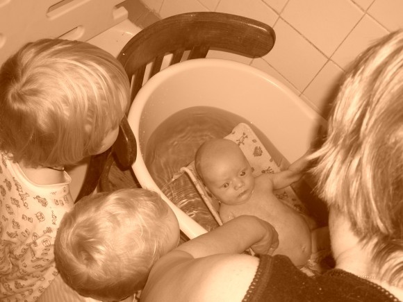 О, это целое приключение, венчающее день, — купание младшего братца.