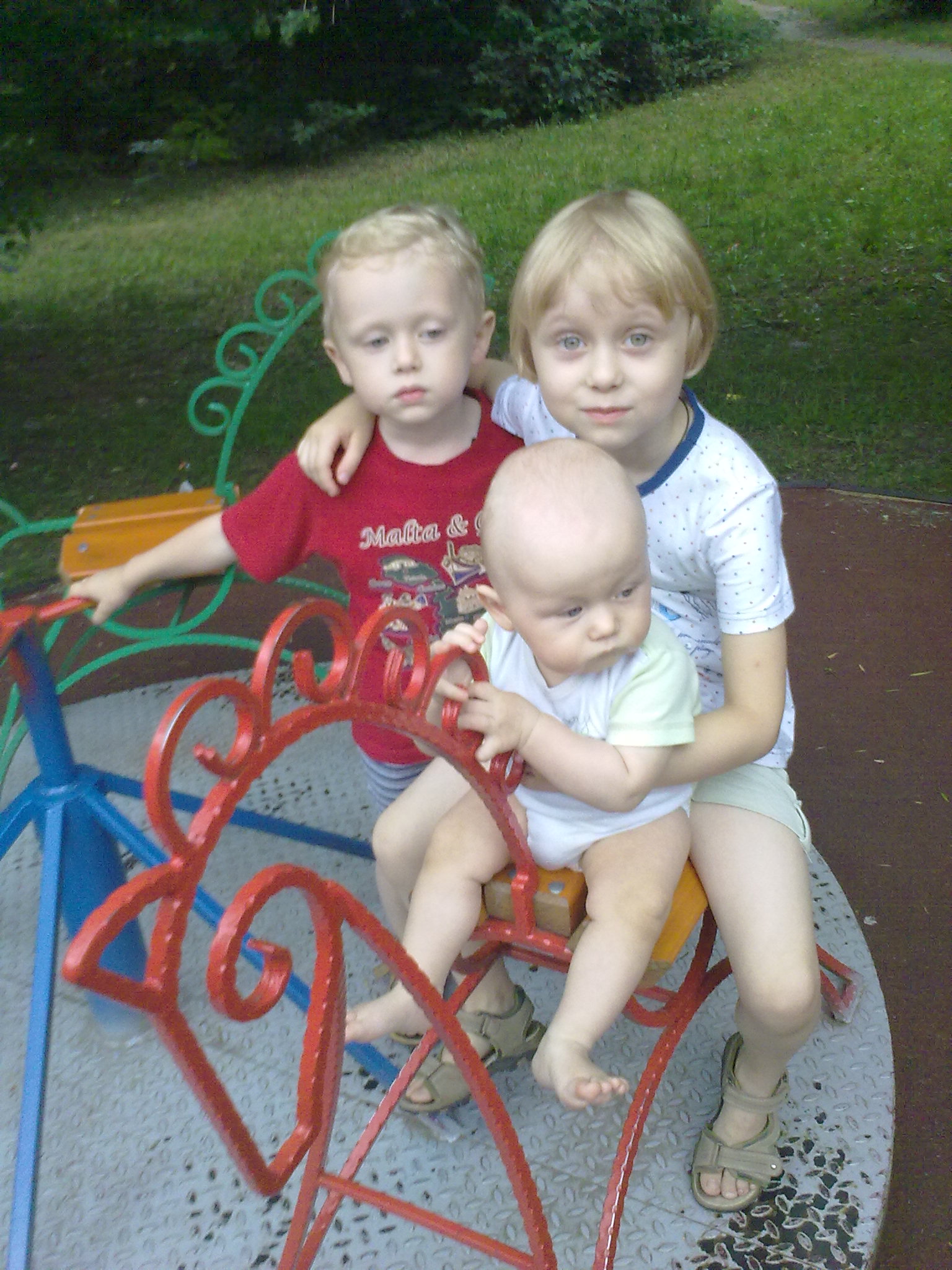 Малыши носятся друг за другом по площадке за домом, из — под ног вылетает мелкая щебенка. Кому это, интересно, пришло в голову посыпать детскую площадку гравием? Оно конечно, весной, воды меньше будет. Но летом… Не дай Бог нечаянно съехать с горки лицом вперед. Двухлетний Макарик однажды съехал. Как будто картечь изрешетила личико сына. Есть ли у того, кто отдавал такие распоряжения, свои дети?