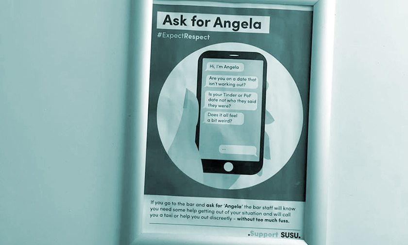 У аптек, магазинов, кафе и баров появились фотографии Анжелы Кромптон и инструкция. «Позовите Анжелу» — кодовая фраза, после которой персонал выведет человека через другую дверь, проводит до указанного места или поможет вызвать полицию.
