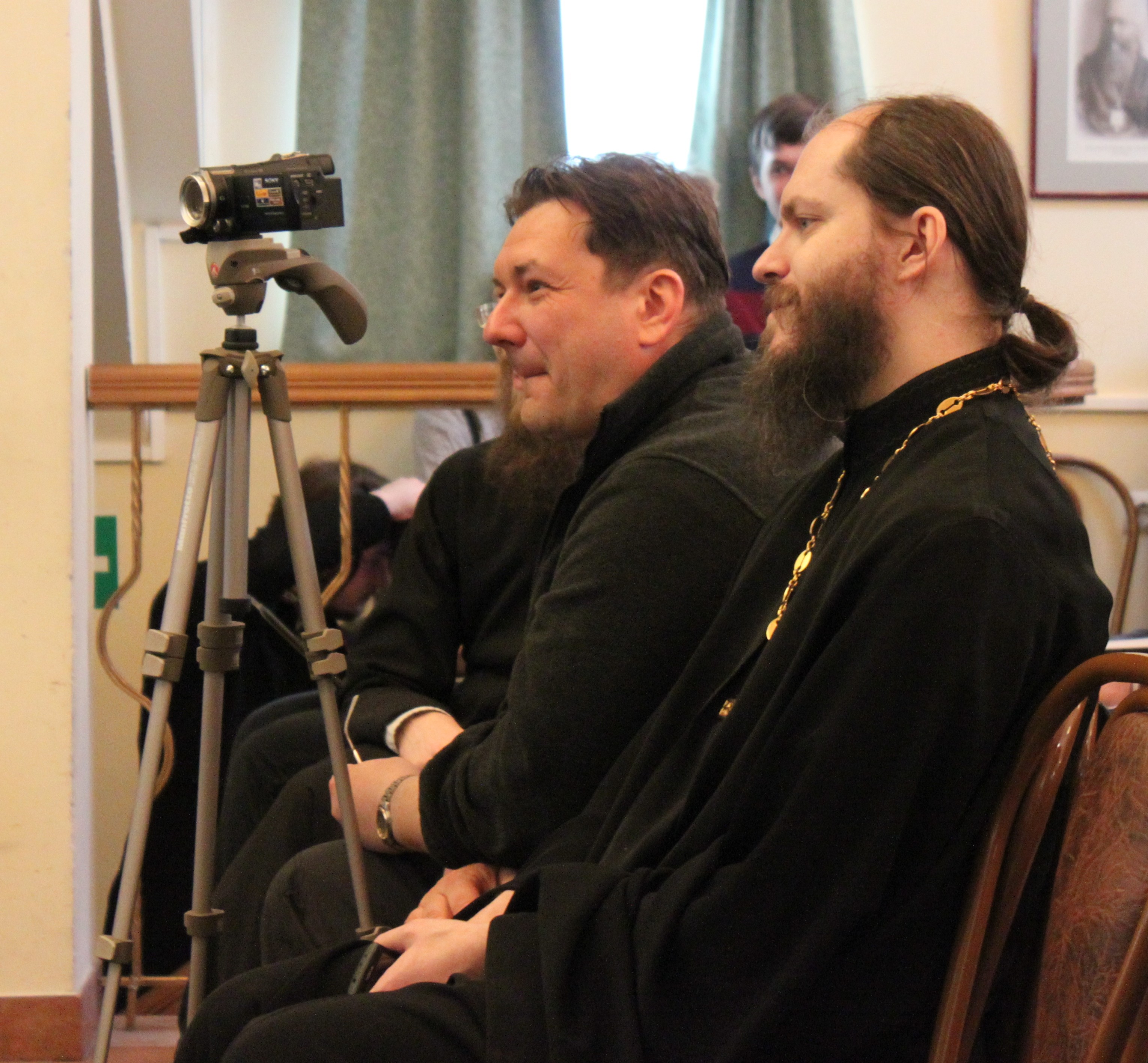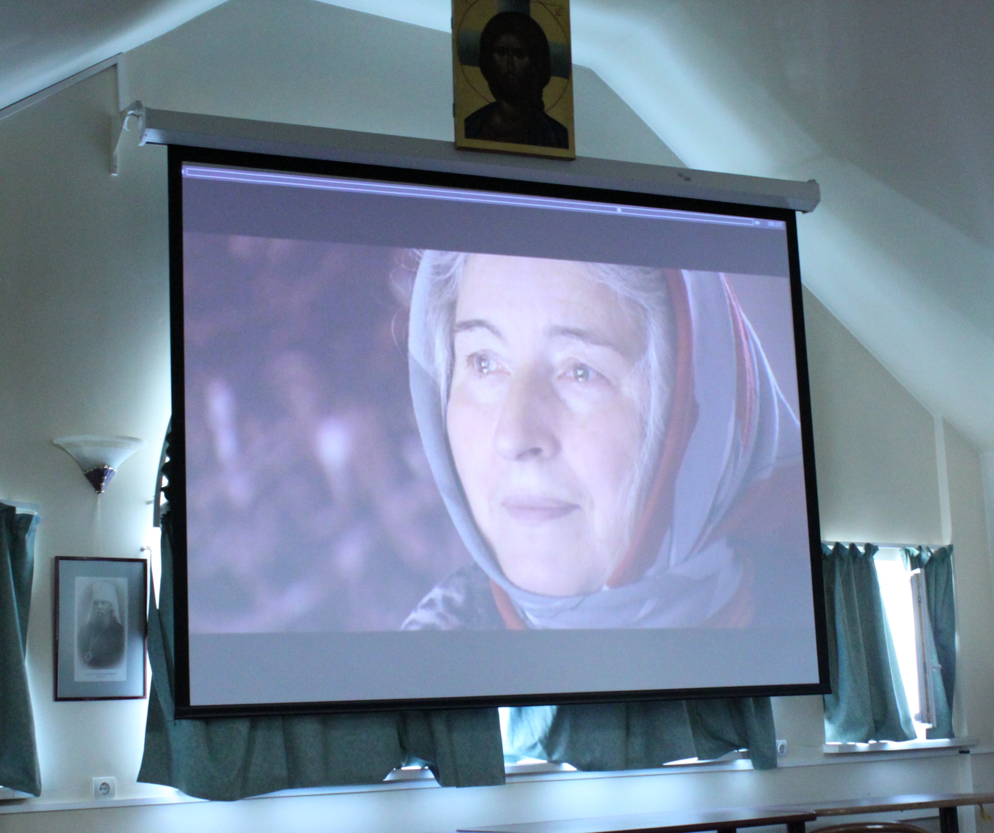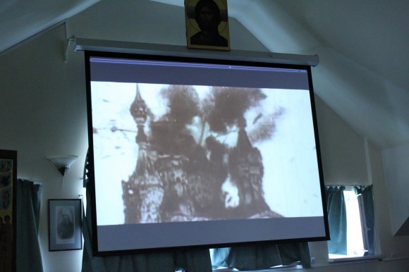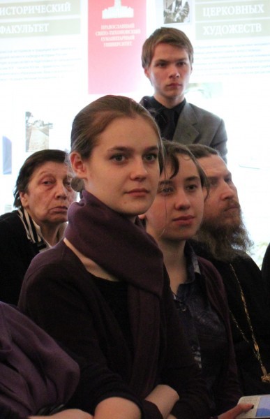 Перед тем, как продемонстрировать свой новый короткометражный фильм, отец Тихон подчеркнул, что в организации выставки принимали участие Сретенский монастырь и ПСТГУ: в частности, блок по новомученикам был сделан по материалам базы данных университета.