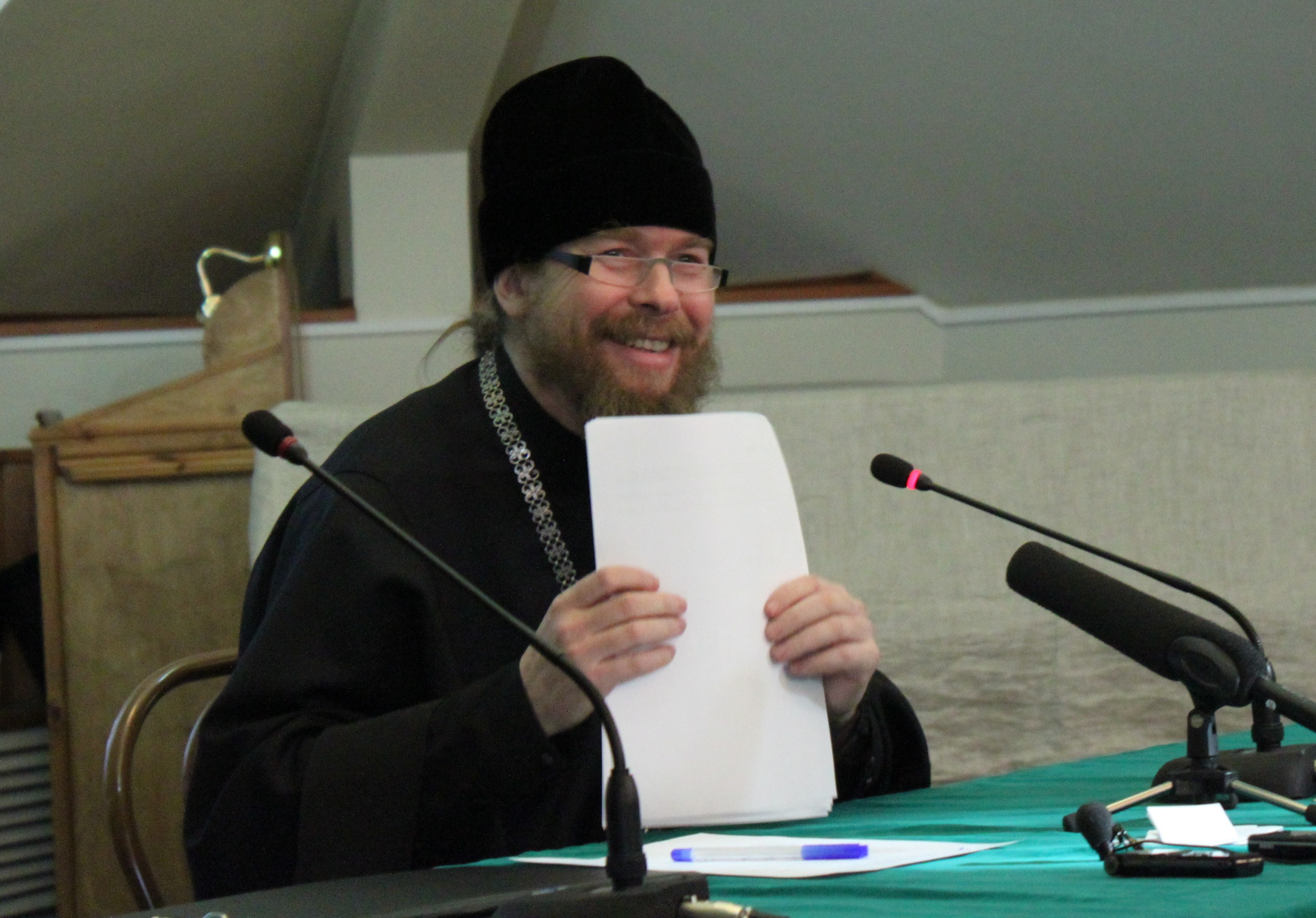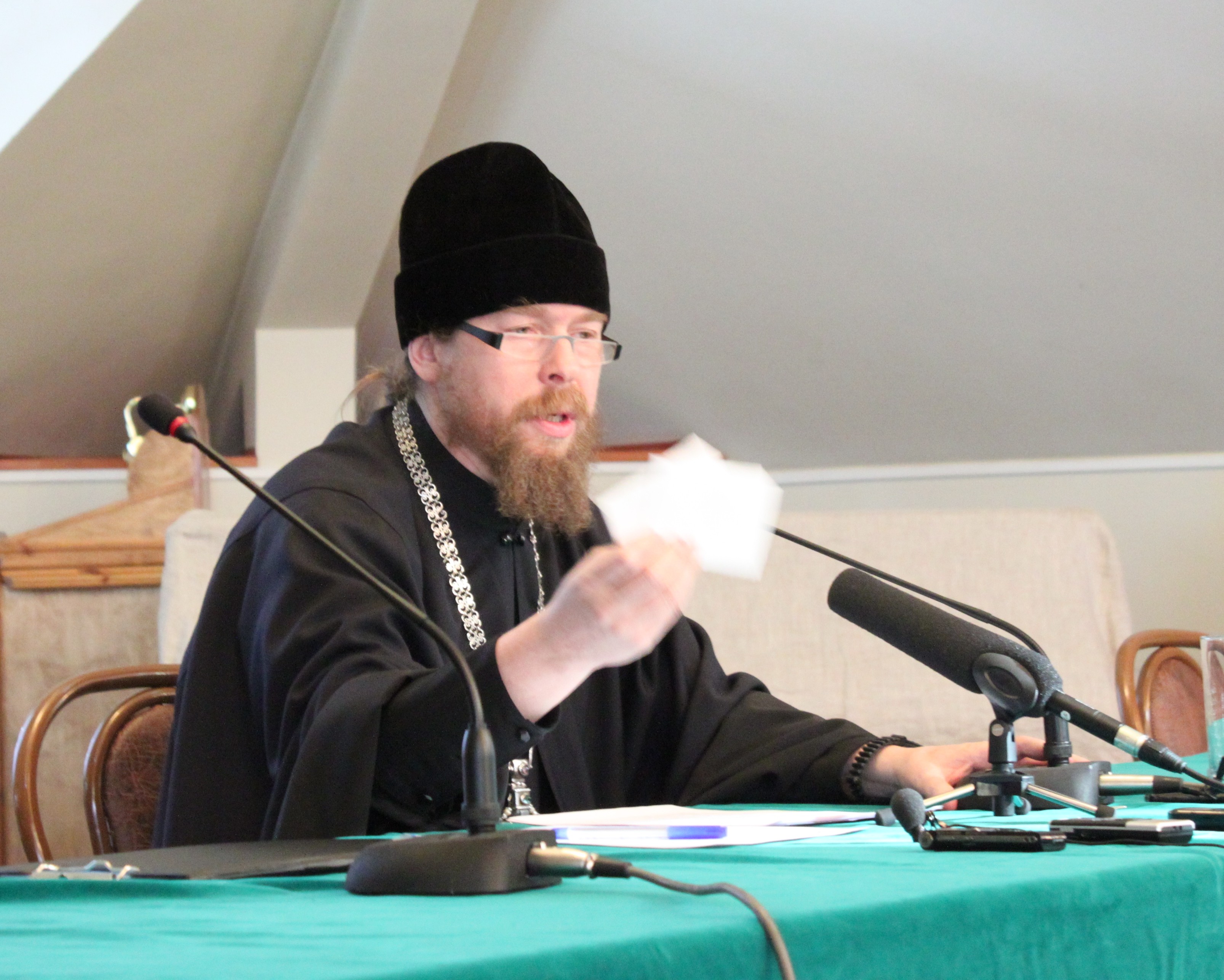 Был задан вопрос о духовном образовании — надо ли в большей степени ориентироваться на научное богословие или миссионерскую направленность.