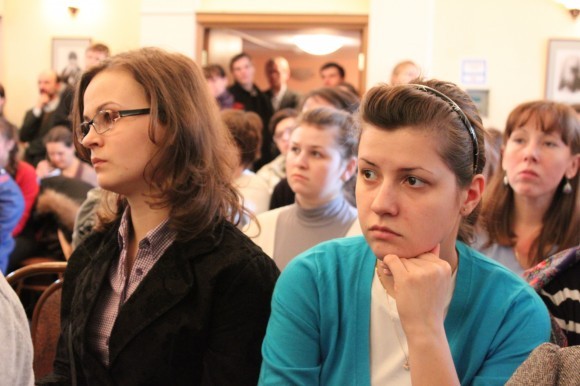 После презентации фильма отец Тихон начал отвечать на записки. Многие темы повторяли обсуждение 13 марта в Российской государственной библиотеке на презентации книги «Несвятые святые», но какие-то вопросы были гораздо более острыми и требовали более развернутых ответов.