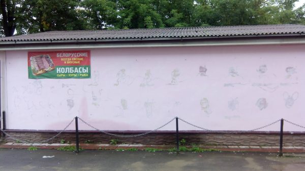 Экскурсия начинается прямо у дома художника – с того самого забора, где были восемнадцать портретов репрессированных. Они замазаны, кое-где баллончиком написаны бранные слова.