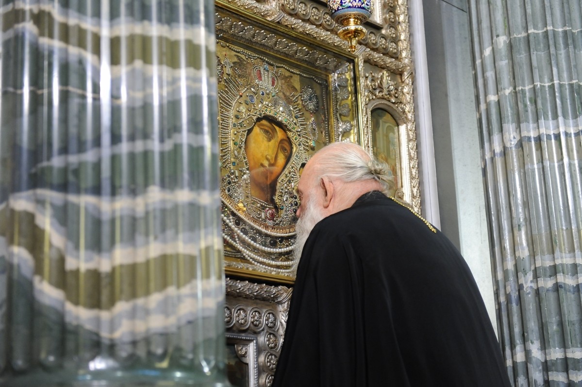 Блаженнейший Архиепископ Иероним поклонился чудотворному образу Казанской иконы Пресвятой Богородицы.Также Предстоятель Элладской Православной Церкви почтил память похороненного в соборе великого русского полководца М.И. Кутузова (1745-1813).