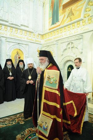 Днем 24 мая 2012 года Блаженнейший Архиепископ Афинский и всей Эллады Иероним принял участие в официальной церемонии открытия Дня славянской письменности и культуры в Москве.