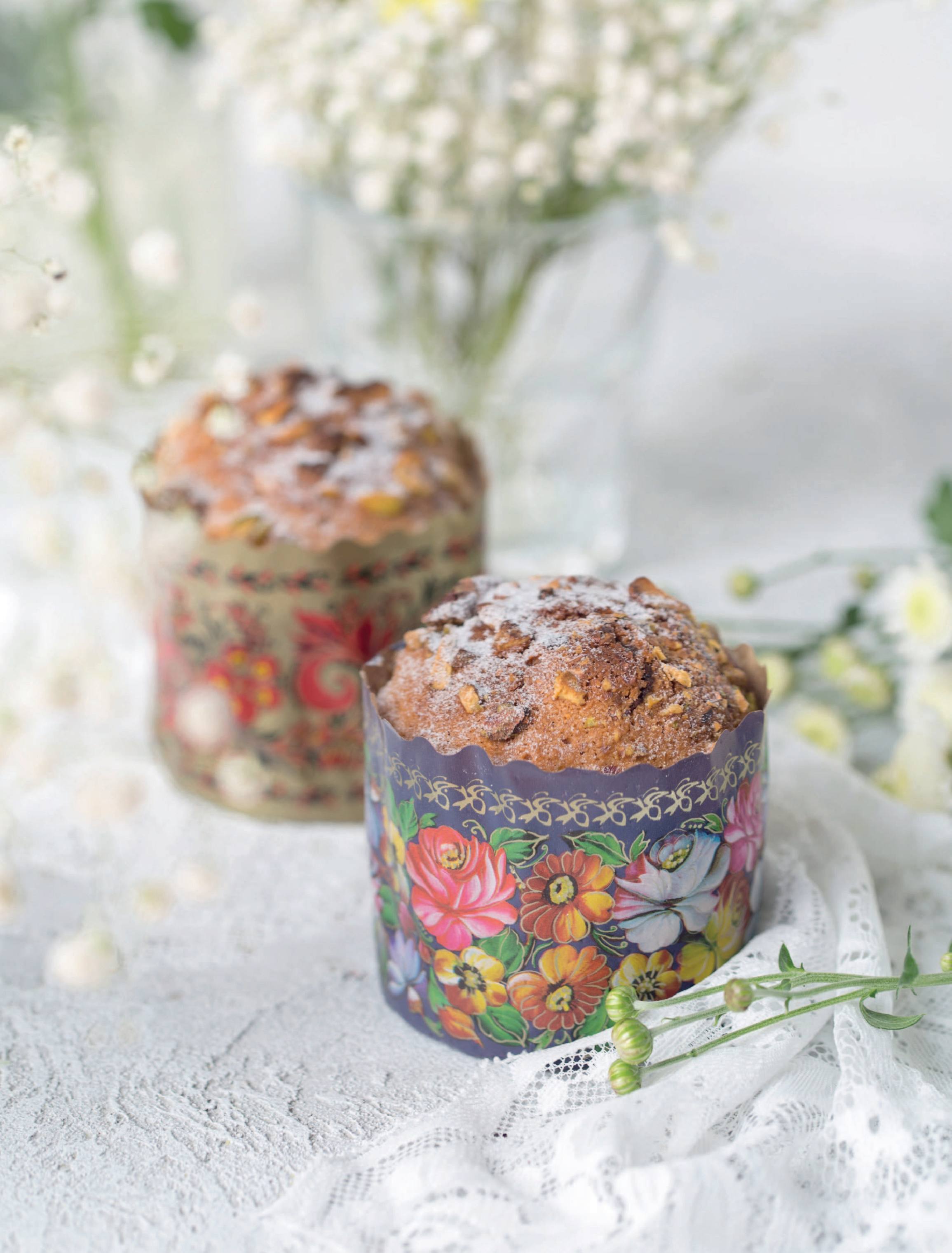 - Готовые куличи вынуть из духовки, дать остыть. На остывшие куличи нанести глазурь.