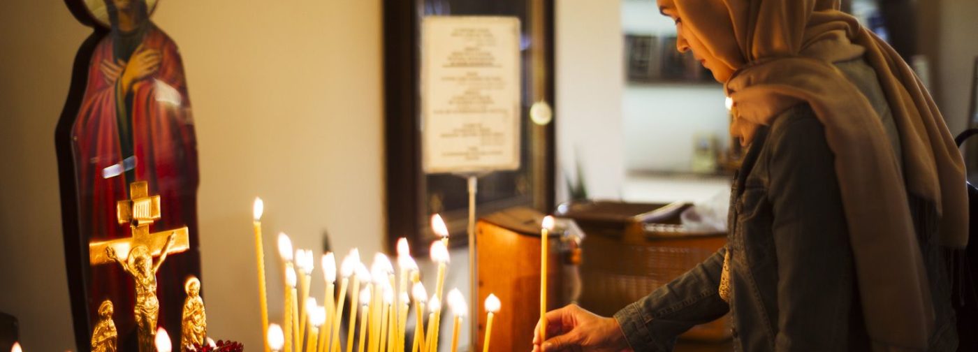 В Церкви живые и усопшие не разделены формой подсвечника, хотя и есть отдельное место для свечей и панихидный стол.