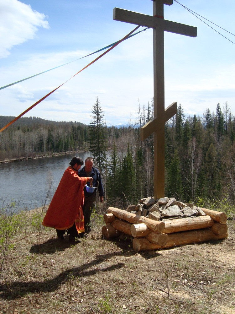 Православный 8-конечный железный крест, установленный на холме в 40-а километрах от поселка Тоора-Хем на берегу реки Енисей, будет доступен взорам всех людей, проплывающих по этой реке.
