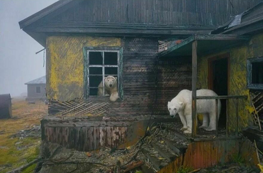 Белые медведи на заброшенной метеостанции между Россией и Аляской. Фото: Dmitry Kokh