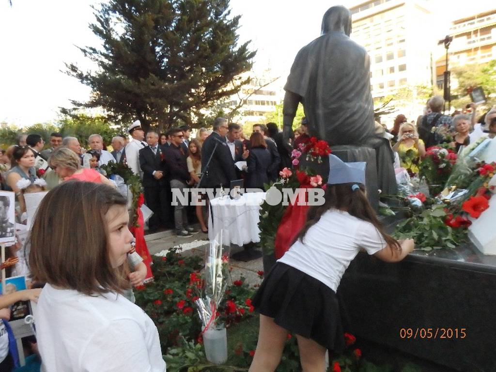 На церемонию возложения венков к памятнику прибыли официальные представители — дипломаты всех стран, входящих в состав СССР. Это Россия, Армения, Азербайджан, Казахстан, Молдавия, Узбекистан. Присутствовали официальные представители муниципалитета Каллифеи и Афин, духовенство. Присутствовали представители Координационного Совета Российских Соотечественников. Военный духовой оркестр исполнял гимны России и Греции, военные марши. Военнослужащие греческой армии несли почетный караул у памятника.
