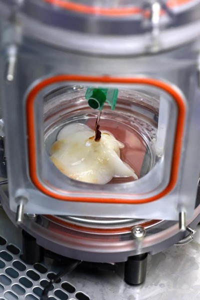 В биореакторе отмывается (децеллулоризируется) печень крысы, целиком