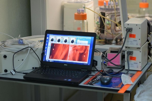Первое, с чем мы работали, – это хрящ. Мы можем in vitro выращивать хрящ в пробирке, но это процесс очень долгий, клетки легко гибнут, им надо создать условия, чтобы они жили и делали хрящевую ткань. Есть такая система, как биореактор, там создается питательная среда, специальные условия. Если вы посмотрите, то там есть красные ячеечки, – там выращиваются хрящики.