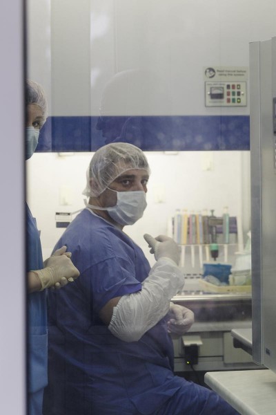 Вот здесь у нас делают клетки, мы их культивируем вот в этом боксе как раз.