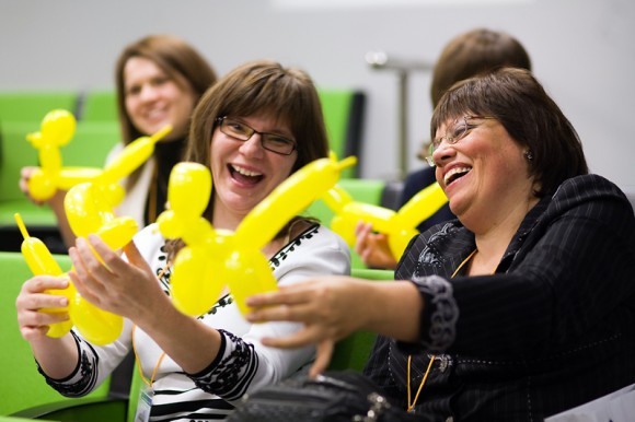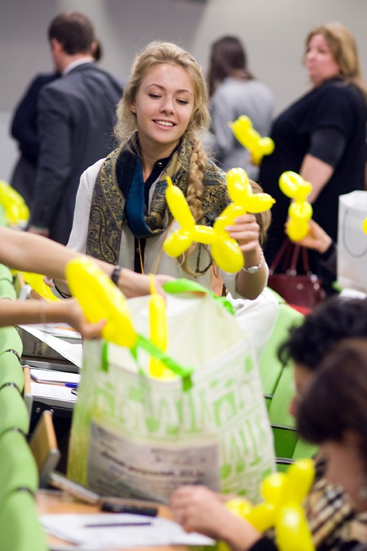 Галина Шатилова и Константин Седов из АНО «Больничные Клоуны» рассказали о работе больничных клоунов и вместе с участниками конференции сделали собачек из воздушных шариков – собачки в тот же день отправляется вместе с добрым клоуном в детскую больницу.