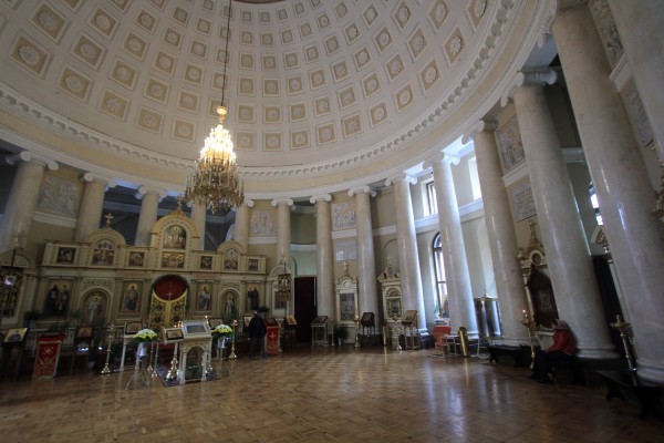 В ряду зданий, вытянувшихся вдоль ее «красной линии», на углу с проспектом Чернышевского стоит небольшая классического стиля церковь в честь иконы Божией матери Всех Скорбящих Радость. Зашли туда, чтобы поставить свечи перед дорогой. Казавшийся с улицы небольшим, храм оказался внутри просторным, наполненным воздухом и светом. У свечного ящика была надпись, гласившая, что вход в музей новомучеников — за углом.