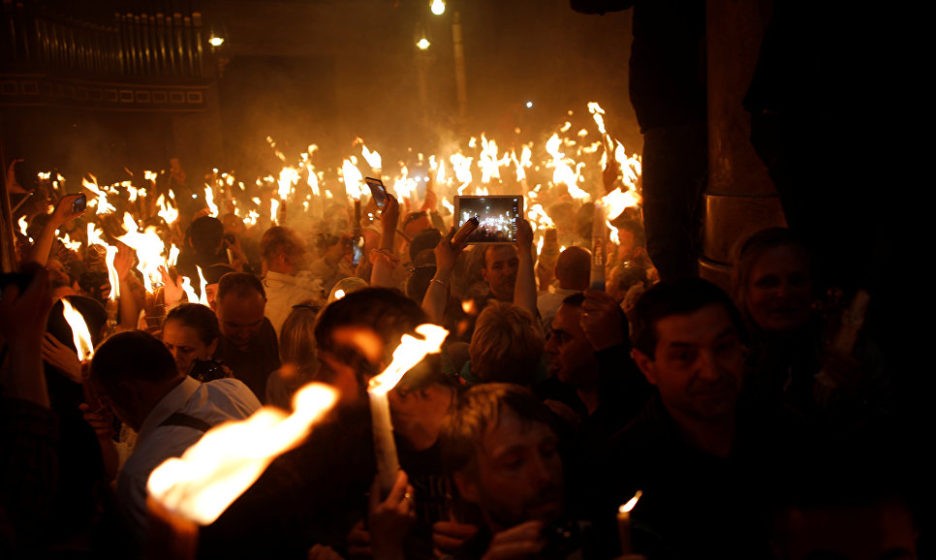 Благодатный огонь сошел сегодня в храме Гроба Господня в Иерусалиме около 14:20. Первым регионом России, куда доставили частицу огня стал Ставропольский край.