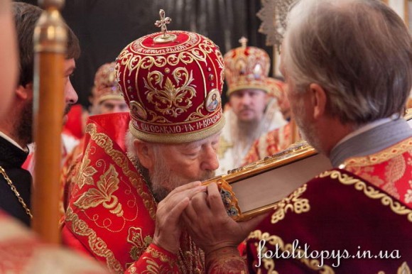 В этот день Предстоятель Украинской Православной Церкви Блаженнейший митрополит Киевский и всея Украины Владимир совершил Божественную литургию в Успенском соборе Киево-Печерской лавры.