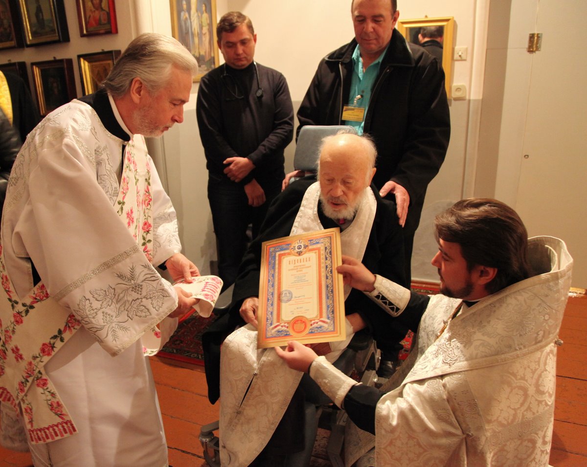 За богослужением по случаю 30-летия диаконской хиротонии Блаженнейший Владыка наградил архидиакона Сергия Косовского «Отличием Предстоятеля Украинской Православной Церкви».