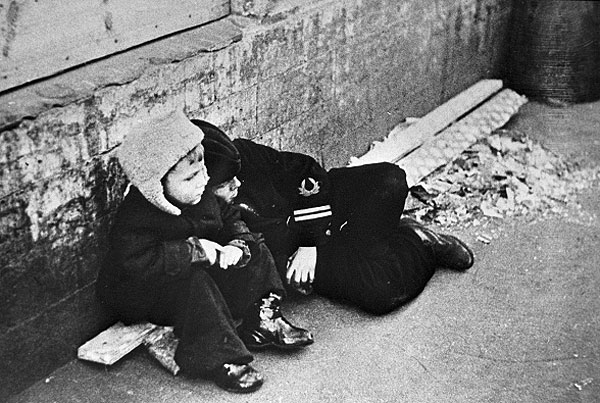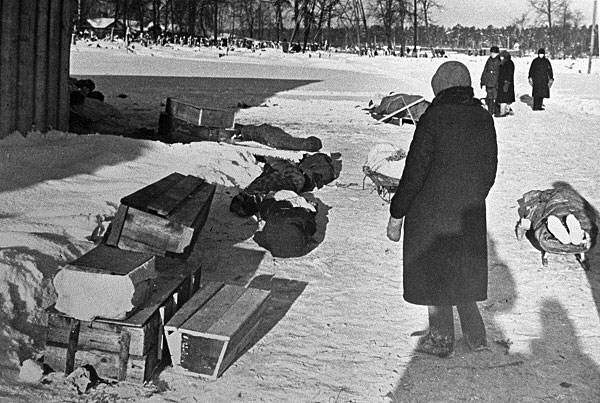 На Невском проспекте после обстрела немецкой артиллерией. Ленинградскиая блокада. Оригинал находится в коллекции Государственного музея истории Ленинграда.