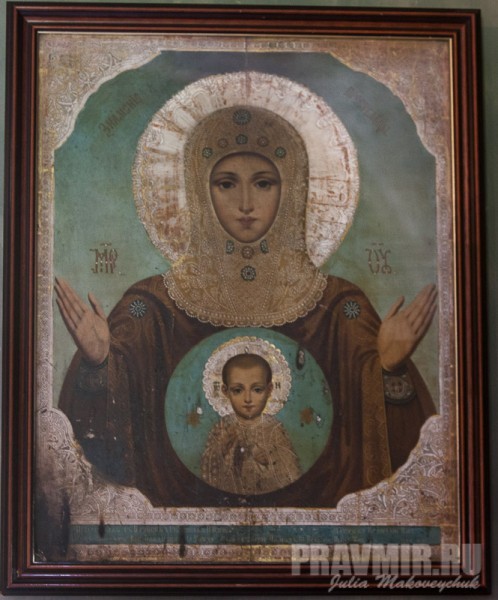 Чудотворная Бодбийская Иверская икона Божией Матери. В годы Великой Отечественной войны образ использовался как операционный стол