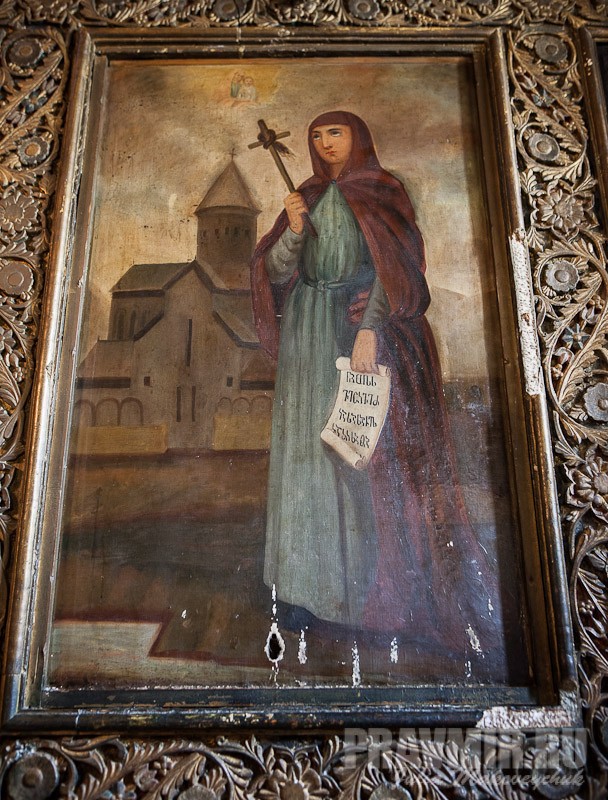 Обращенный Ниной в христианство грузинский царь Мириан хотел перенести тело великой просветительницы в столицу — Мцхету, но две сотни людей не смогли сдвинуть останки с места. Могила святой Нины стала особо почитаемым местом, над ней был построен храм — величественная базилика.