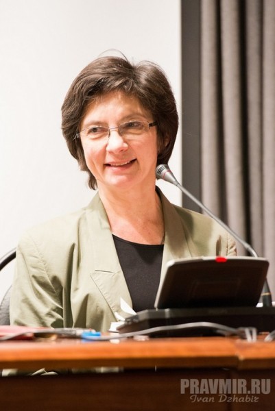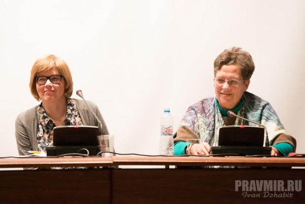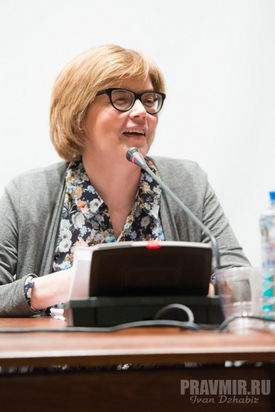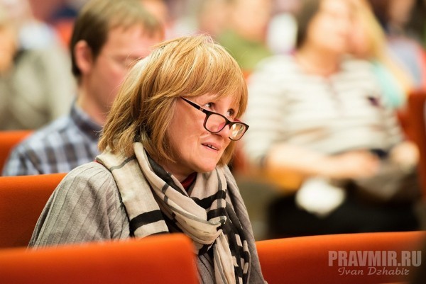 Доклад Майи Кучерской дополнила рефлексотерапевт Фредерика де Грааф, сотрудник Первого московского хосписа, духовная дочь митрополита Антония Сурожского. Она рассказала о том, как связаны радость, о которой так часто говорил владыка Антоний, благоговение и юмор.