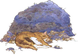 Пришел торговец в гости и — оторопел. Было на что посмотреть: повсюду шныряют мыши и крысы, а слуги с палками стоят наготове, чтобы отгонять их от стола. Тогда он обратился к хозяину: «Брат, что это у вас?» А хозяин ему со вздохом отвечает: «Так у нас всегда! Из-за этого зверья мы не можем спокойно ни пообедать, ни поужинать. А чтобы спать лечь, каждый залезает в свой сундук и закрывает его, чтобы во сне мыши уши не отгрызли». Тогда торговец вспомнил о коте, которого он купил за денежку, и говорит хозяину: «У меня на корабле есть зверь, который уничтожит их за два-три дня». Хозяин взмолился: «Брат, если есть у тебя такой зверь, принеси его сюда. Если правду говоришь, я наполню твой корабль златом и серебром доверху!»