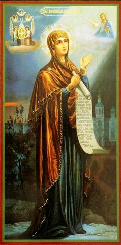 …Но до сих пор мне кажется, что приехала я тогда в монастырь только ради нее. С тех пор прошел не один год, но больше ни одна святыня не вызывала во мне ничего подобного тому, что ощутила я в тот вечер за всенощной в Успенском храме Княгинина монастыря. Тогда в недоумении, не видя иконы, я думала о ней, Боголюбской. Долго стояла напротив алтаря, но, отступив влево, вдруг увидела ее. Это было тихое потрясение. В храме было темно, уже свет не проникал в узкие оконца, шло лишь слабое освещение из алтаря, и крошечные огоньки лампадок свечками мерцали в сумраке. Но икона, освещенная свечами и лампадами, испускала тихое сияние. Светился фон, и мне сразу вспомнилось, что в старину фон называли «светом». Не могла оторвать взгляда от образа, лаконично строгого, – Божия Матерь со свитком в руках… И дело было не только в том, что икона эта дошла до нас из глубокой старины, что век, время Боголюбского, вдруг стал явственно зрим в красках, в совершенно уже непонятном нам, нынешним, мастерстве иконописца. Главное, от образа Богоматери шла такая необыкновенная благодатная сила, что душа, обычно ленивая на восприятие духовного, сама жадно погружалась в море этой благодати. Взгляд уходил в икону как в необъятную, непостижимую глубину…