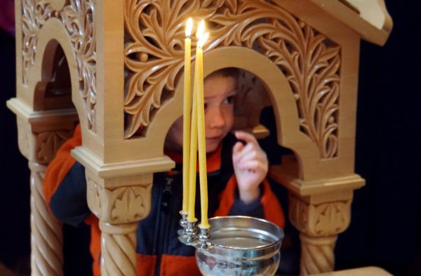 Идет служба. Мальчик лет трех-четырех залез под центральный аналой и с задорной улыбкой смотрит на окружающих. Люди приветливо улыбаются в ответ и продолжают молиться. В это время другой ребенок сосредоточенно сковыривает воск с подсвечника. Кажется, детям здесь спокойно, они не ждут окриков и нагоняев. В теплое время года детвору чаще можно увидеть на ступеньках храма или в небольшом радиусе вокруг него. При этом двери церкви открыты настежь, наружу отчетливо доносятся звуки богослужения, со ступенек прекрасно видны иконостас, священнослужители и все происходящее внутри. К причастию все возвращаются в церковь.