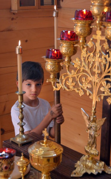 Идет служба. Мальчик лет трех-четырех залез под центральный аналой и с задорной улыбкой смотрит на окружающих. Люди приветливо улыбаются в ответ и продолжают молиться. В это время другой ребенок сосредоточенно сковыривает воск с подсвечника. Кажется, детям здесь спокойно, они не ждут окриков и нагоняев. В теплое время года детвору чаще можно увидеть на ступеньках храма или в небольшом радиусе вокруг него. При этом двери церкви открыты настежь, наружу отчетливо доносятся звуки богослужения, со ступенек прекрасно видны иконостас, священнослужители и все происходящее внутри. К причастию все возвращаются в церковь.
