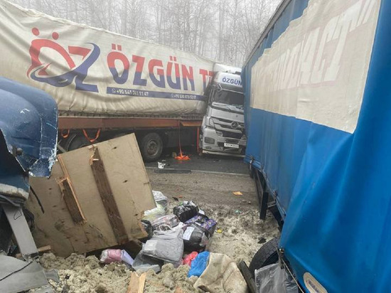 По предварительным данным, причиной аварии стали гололед и туман. Движение на трассе перекрыто.