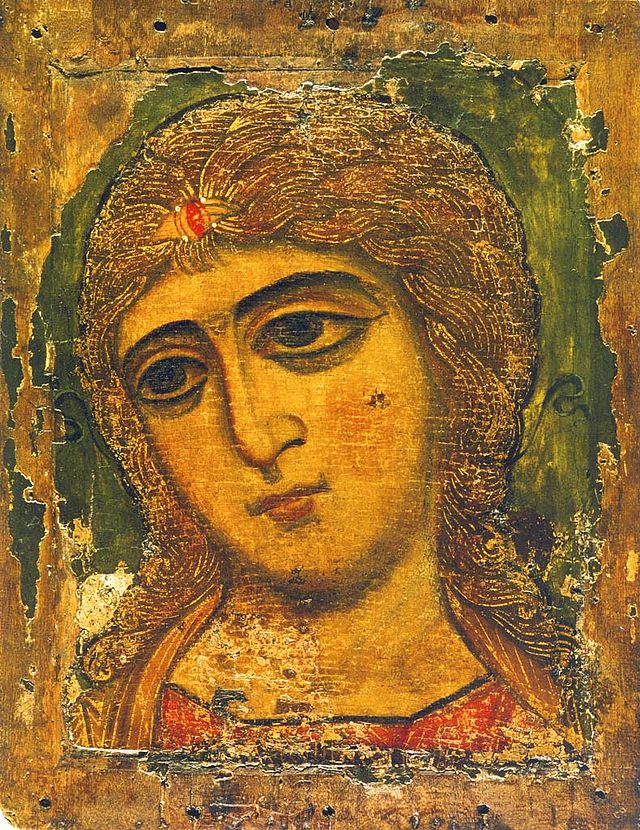 Стоишь перед иконой Ангела Золотые Власы. Что видишь? Линий выписано немного, красок наперечет. За пышным портретным разнообразием извольте обращаться не к традиционной православной иконе, а к католическим образцам. Мелких деталей на иконе никаких нет…