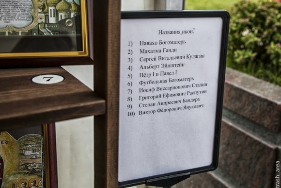 — Совершенно верно! И меня покоробило! И меня оскорбило! Потому что я этим вопросом довольно давно занимался. И на тему этих антиправославных «икон» писал много раз. Иллюстрации размещал. И перед акцией у меня в ЖЖ было написано, что будет выставка кощунственных, неправославных «икон», с помощью которых люди пытаются «оправославить», легализовать свои личные политические убеждения или человеческие амбиции. И это очень опасно, потому что не все люди, особенно молодые, знают, что такое каноническая и неканоническая икона, где святой образ, а где самочиние и профанация. И мы их выставили для того, чтобы люди увидели, до чего сегодня доходят иные люди и политически силы. Чтобы увидели, что даже можно саму икону превратить в оружие антихристианской пропаганды. Вот о чем шла речь.