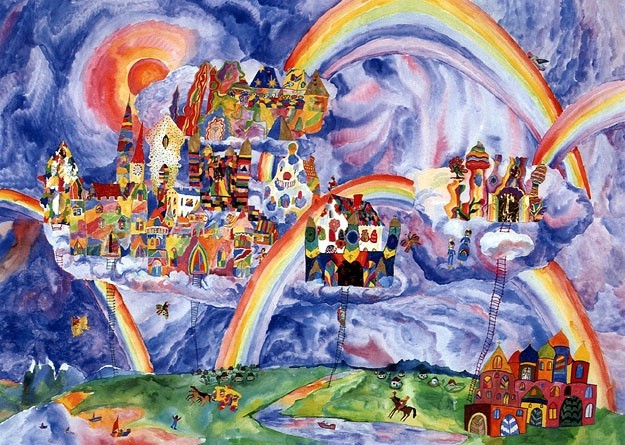 А земля поет небу благоуханием, а небо поет земле светом и прохладой. А птицы играют в нем, а оно их качает на ветре. По земле синие звезды цветов, а на небе – словно белые пионы — лохматые облака. Лучшая минута в жизни — потому что вспомнился душе райский сад.