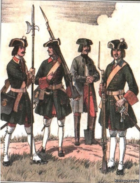 Солдаты упражнялись в военном деле ежедневно, за исключением праздников. Ровный шаг, дружная стрельба ротами, штыковая атака — всему этому обучали их офицеры по петровским артикулам. Среди первых петровских офицеров было немало нанятых на русскую службу иноземцев, к которым солдатство относилось с недоверием. Поражение при Нарве обнажило эту проблему, и неутомимый император занялся подготовкой русских офицерских кадров, которые и в XVIII веке решали всё.