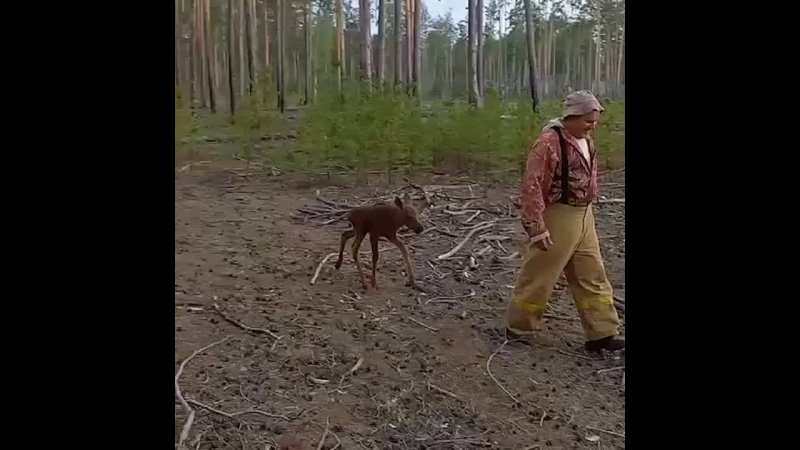 Тюменские пожарные спасли лосенка из горящего леса